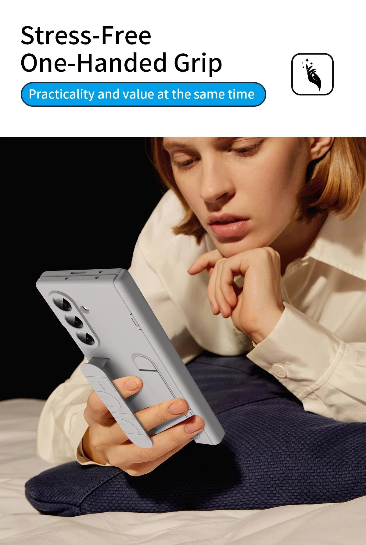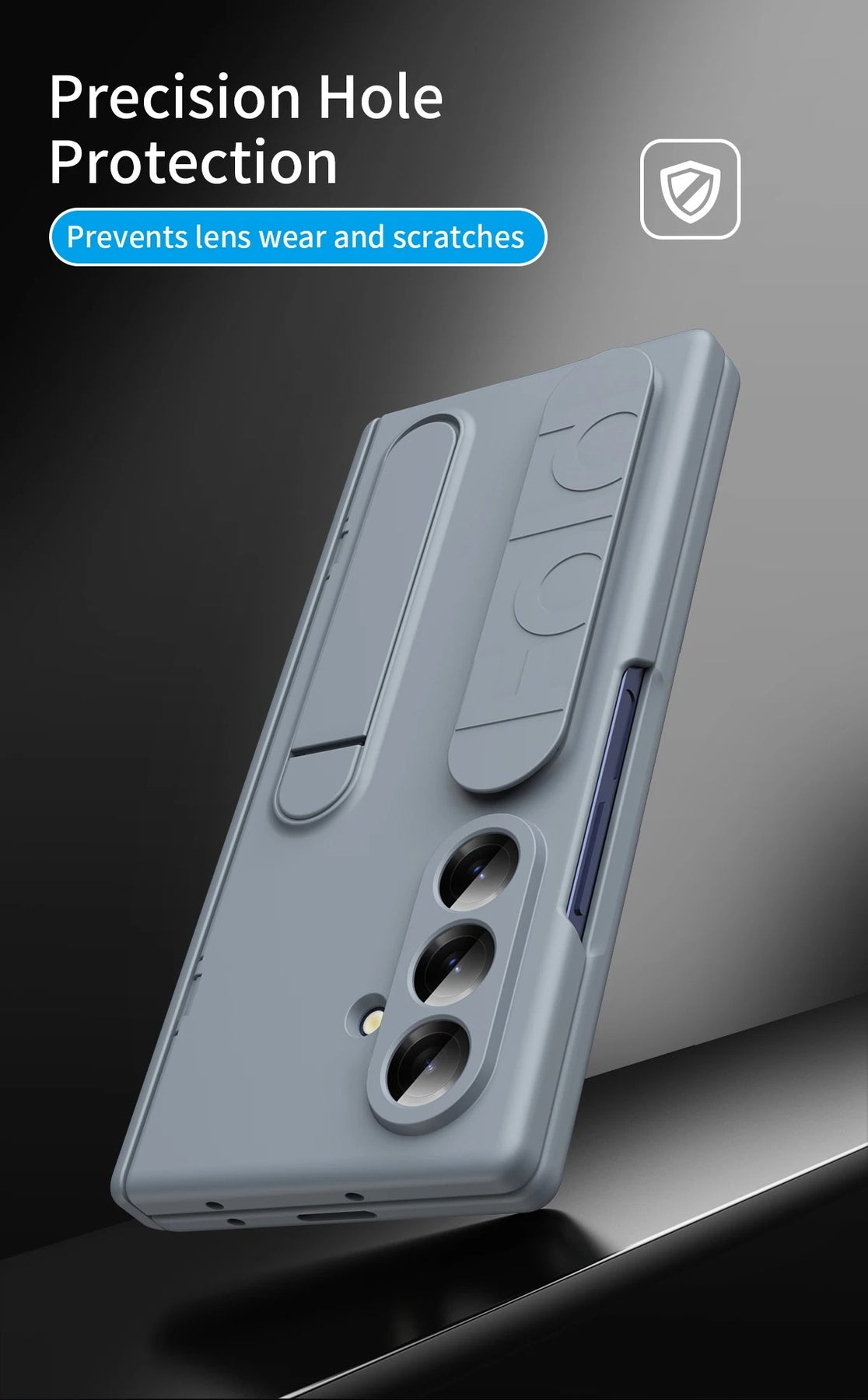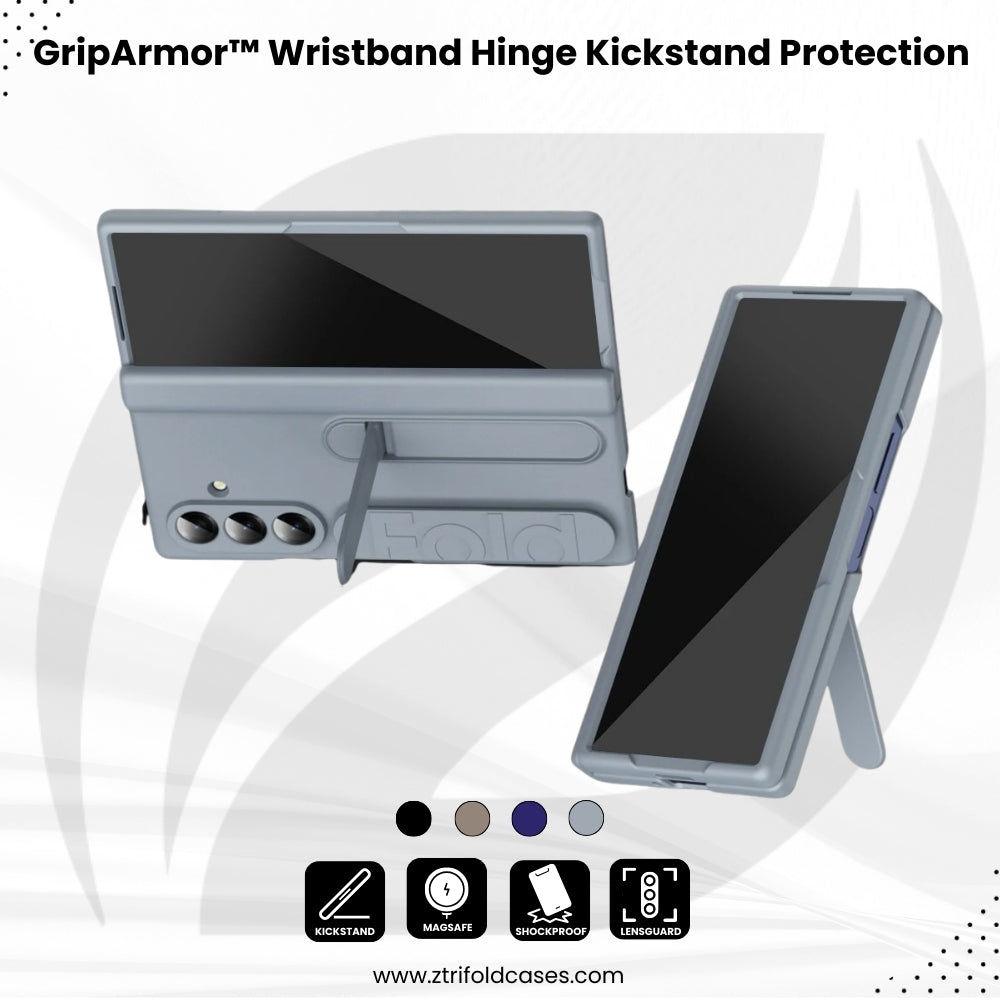 Built for those who demand serious protection without sacrificing usability, GripArmor™ transforms your Galaxy Z TriFold into a rugged, everyday powerhouse. The reinforced hinge bracket, shockproof hard shell, and tempered glass panels work together to guard your device from drops, scratches, and dust. A built-in wristband and kickstand add confidence and comfort to every fold, hold, and hands-free moment—perfect for work, travel, and active lifestyles.
